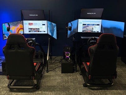 Now available at Uplink KOP! Junior Racing Sims! Suitable for ages 8+, these sims are a smaller version of our adult racing sims and use Moza R5 wheels and pedals giving our junior drivers the same direct drive wheel setup features as our Adult sims, with a less torque!